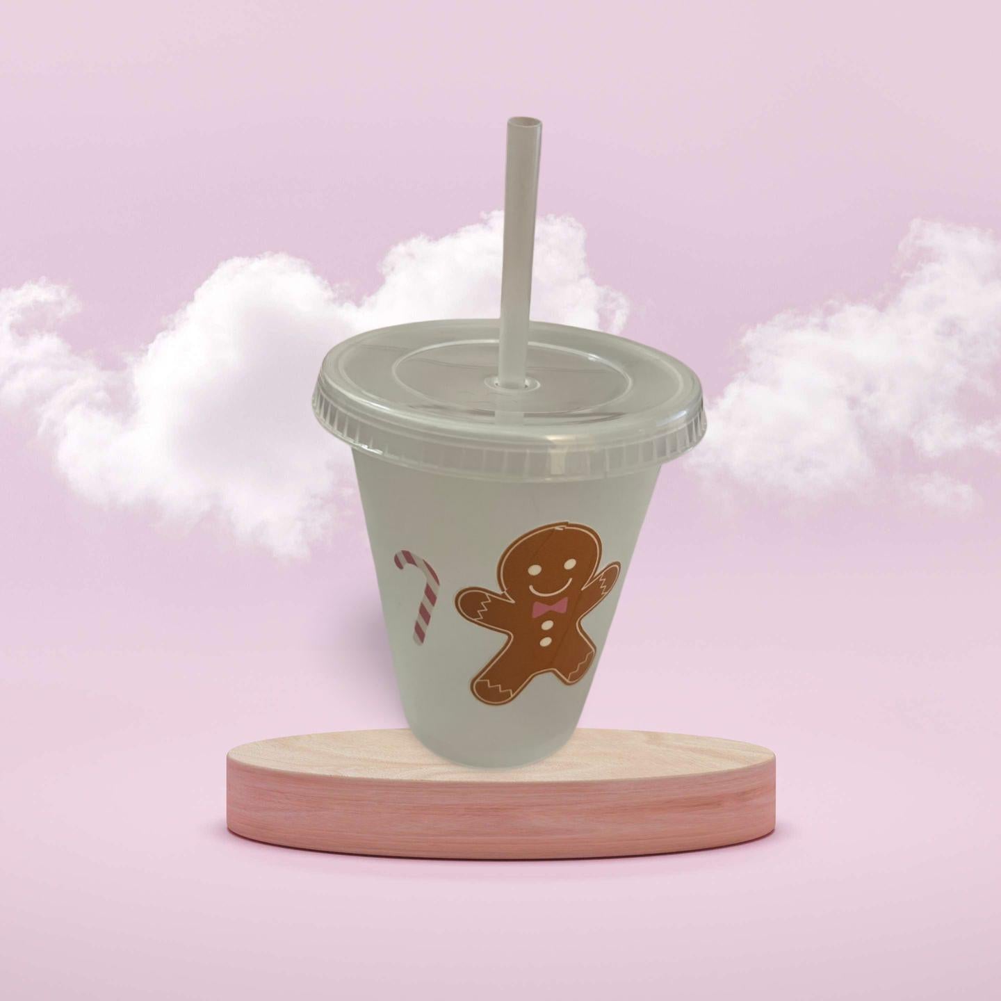 16 oz Clear Plastic Cup with Lid and Straw- Gingerbread Man
